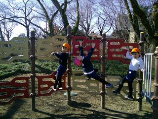 地震などの災害が起きた時を想定しながら、子どもたちと保和苑まで歩きました!!