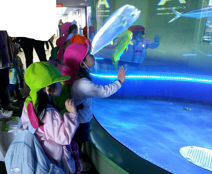 バスの中でも「イルカが見たいな!」「サメもいるよね!」と楽しみにしていました!
