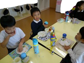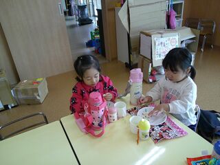 「まだまだ残ってるから、またやろうね!」と言われ、次のおやつを楽しみにしている子ども達です!!