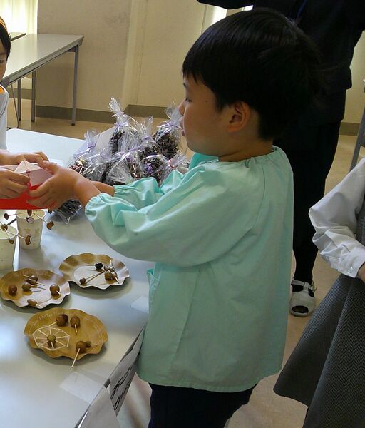 どんぐりやまつぼっくりの置き物や、毛糸で作った焼きそば、手作りのゲームまで!!