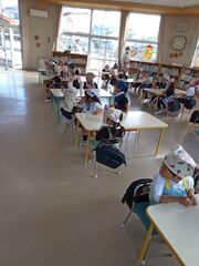 年少さんがみんなで作った”パフェ!”初めて包丁を使ってバナナを切ったり、クリームをつけたりしました。とっても美味しかったね♪