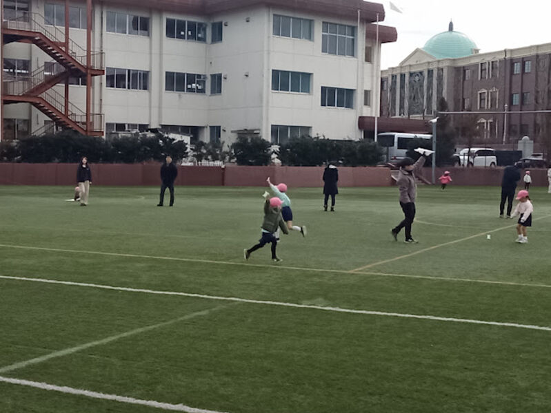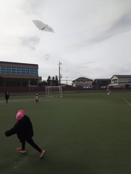 先週に引き続き、年中さんの親子たこあげ会でした。底冷えする日でしたが、子ども達はいっぱい走って高く高く凧をあげていました。