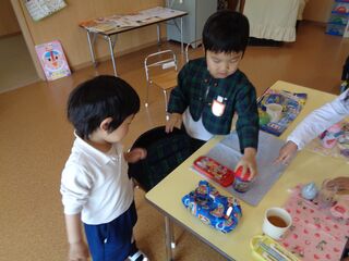 年長さんになったお友達が年少さんのお手伝いを進んでしてくれています!!お着替えや昼食の準備、「こうやるんだよ!」と優しく手を差し伸べている姿があちらこちらで見られました😊頼もしい年長さんです✨