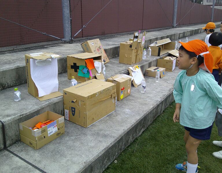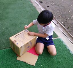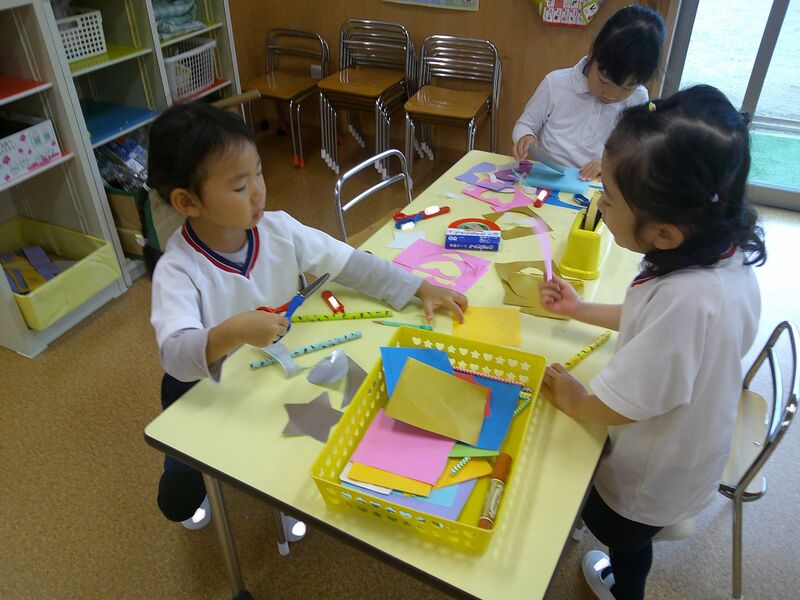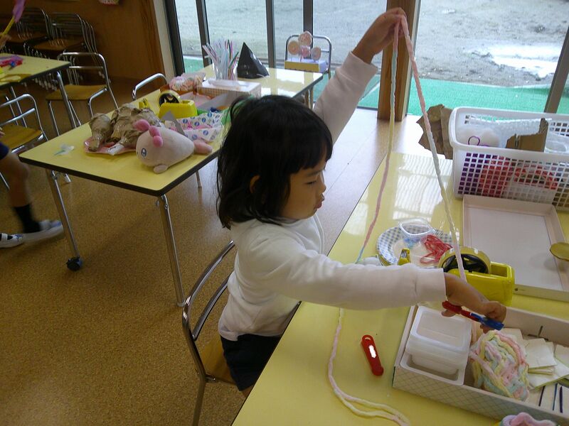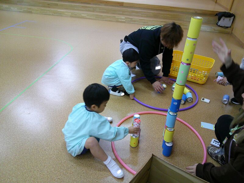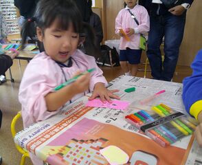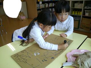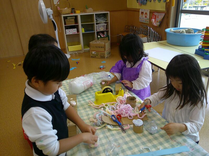 お兄さん、お姉さんの作ったものに憧れて、「私も作りたい!」と小さなお友達が言うと、「一緒にやってあげるよ!」と年長さんや年中さんがお手伝いしてあげています!!