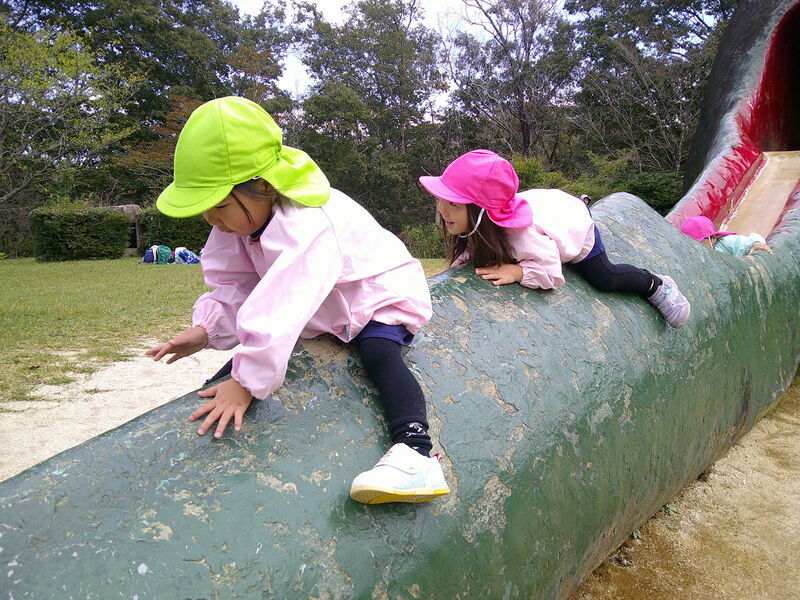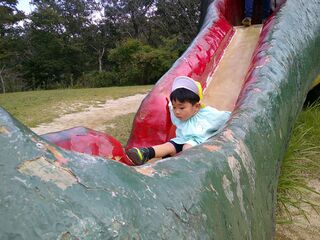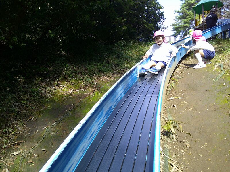 恐竜を見て「すっごい大きいー!」と恐竜の大きさに驚いたり、長い滑り台では、ヘトヘトになるまで何度も滑った子ども達です😊