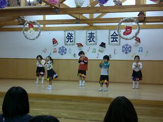 「発表会頑張ったね!」と言って、サンタさんからプレゼントをもらいました!!