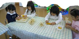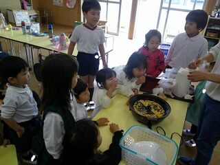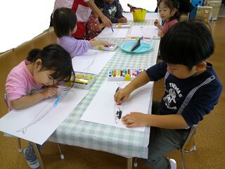 子ども達はさんまの絵を描いたり、手で...