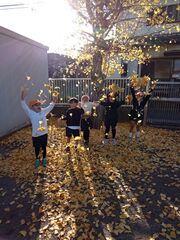 イチョウの葉っぱが黄色になったと思ったら、葉っぱが落ちてあたり一面